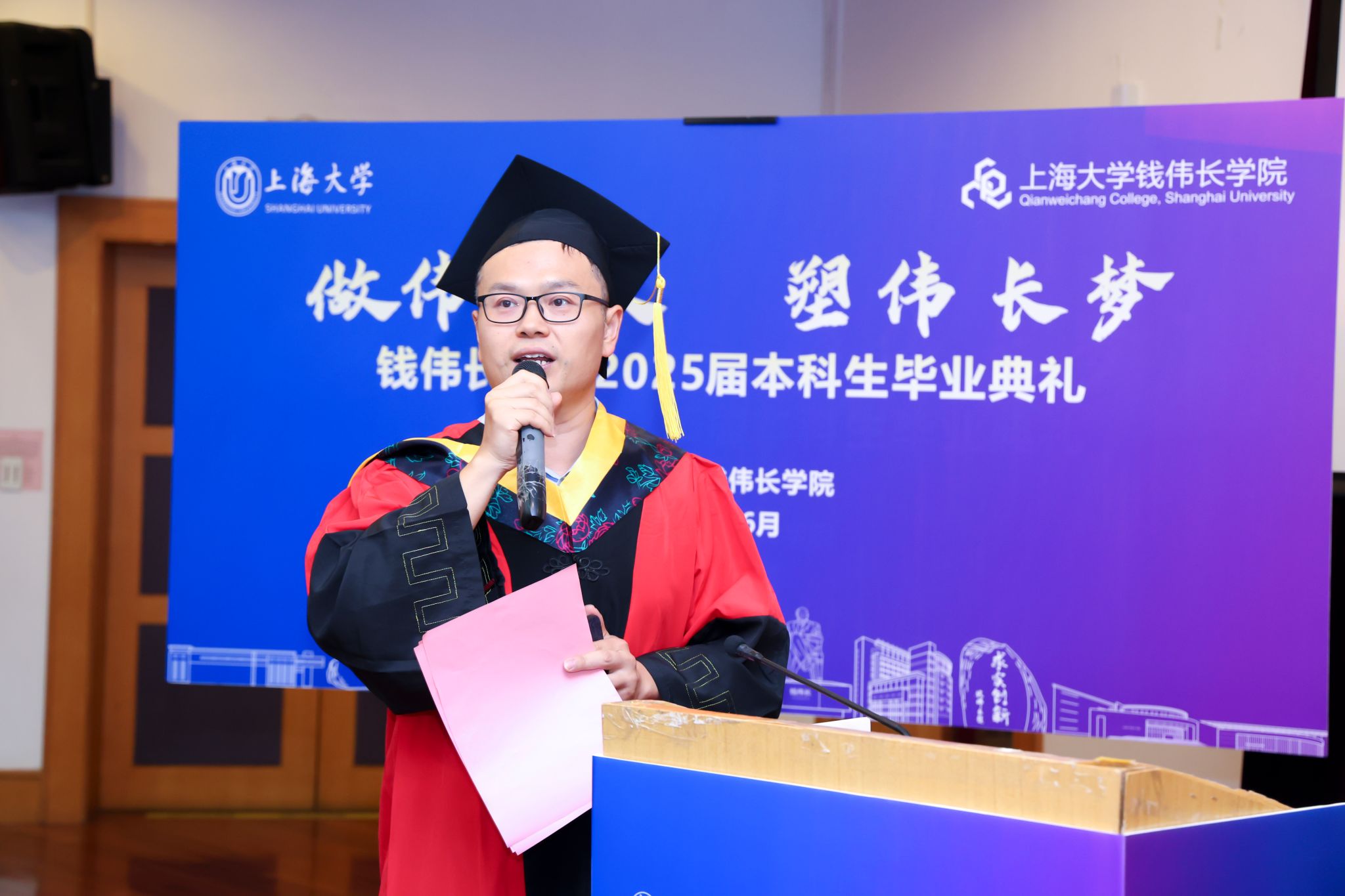 上午10:00,毕业典礼在庄严的奏唱国歌中拉开帷幕。师生们首先观看了由周奕含同学精心制作的主题视频,视频收集了学长学姐们的校园学习生活片段,一张张灵动的照片、一段段充满欢声笑语的剪影,带着毕业生们共同追忆了大学四年的流金岁月。随后,钱伟长学院副院长许新建老师介绍了2025届毕业生基本情况。