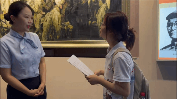 调研期间,实践团还围绕红色文化传承与区域协作主题,先后访谈了多位深耕红色一线的建设者和工作者,深入了解不同视角下的革命精神传承与新时代发展经验。在红花岗区老城街道纪念馆社区,党总支书记张仙介绍了红色基地的保护与社区红色文化建设的智慧;在《伟大转折》剧场,毛泽东饰演者王广胜老师交流了塑造革命领袖形象的创作历程,为大家详细解析“如何通过艺术表演还原历史真实,使观众更直观地感受遵义会议的重大历史意义”。访谈结束后,大家还受邀观看了沉浸式红色舞台剧目《伟大转折》,颇受震撼;在遵义会议纪念馆,资深讲解员张雯同志结合多年工作经验,向成员们讲述不同群体对红色文化的接受特点,以及如何通过精细化讲解服务,让参观者真正理解遵义会议精神的核心内涵。